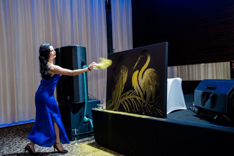 We are glad to present for you our new Golden show! The best show for your event. Gala dinners, exhibitions, weddings and etc. We can customize show for each client individually and create on the canvas your portrait, company logo or any landscape. Duration of show - 10 minutes. Confirmation of show - at least 1 week before event. For booking please contact us